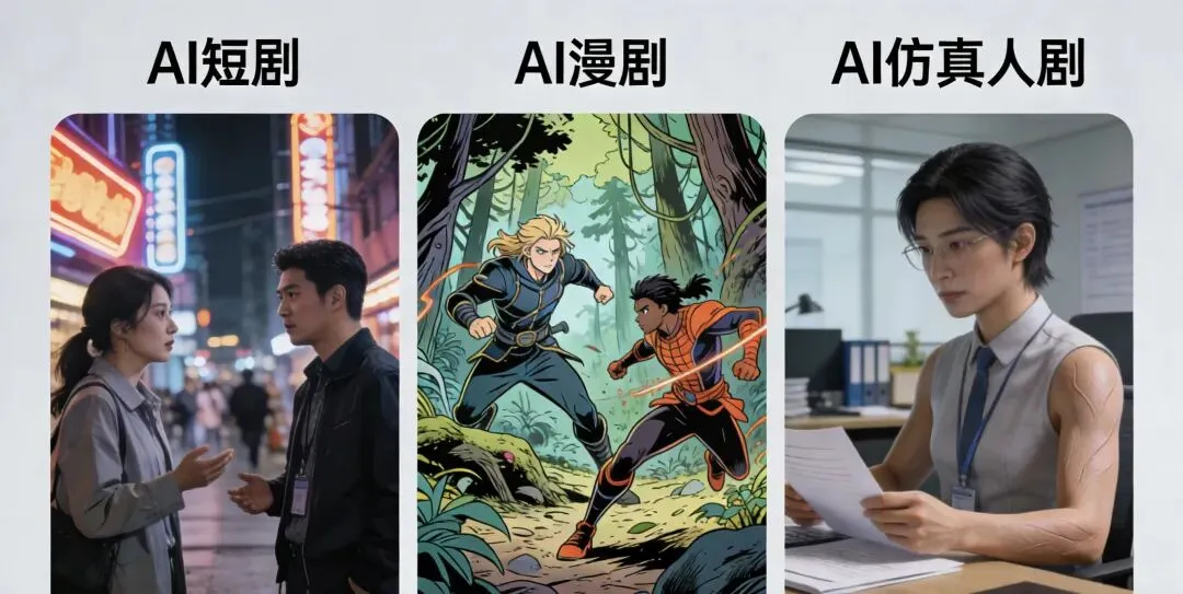 当AIGC技术彻底渗透短剧赛道,影视创作的边界被不断重构,真人实拍短剧、AI仿真人短剧、AI漫剧三分天下,成为当下短剧市场的核心形态。看似同属短剧品类,都遵循短平快、强冲突、高爽点的底层逻辑,但落到剧本创作的实操层面,三者从创作内核、文本规范、叙事逻辑到艺术表达,都有着截然不同的底层逻辑与创作要求。