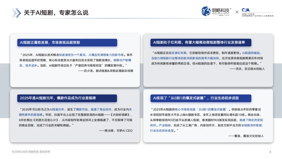 这份报告让我们看到,AI短剧的红利期确实已经到来,但单纯的“技术堆砌”正在失效。随着行业基准线的抬高,未来的竞争将回归到**“内容创意”与“情感共鸣”**的本质上。