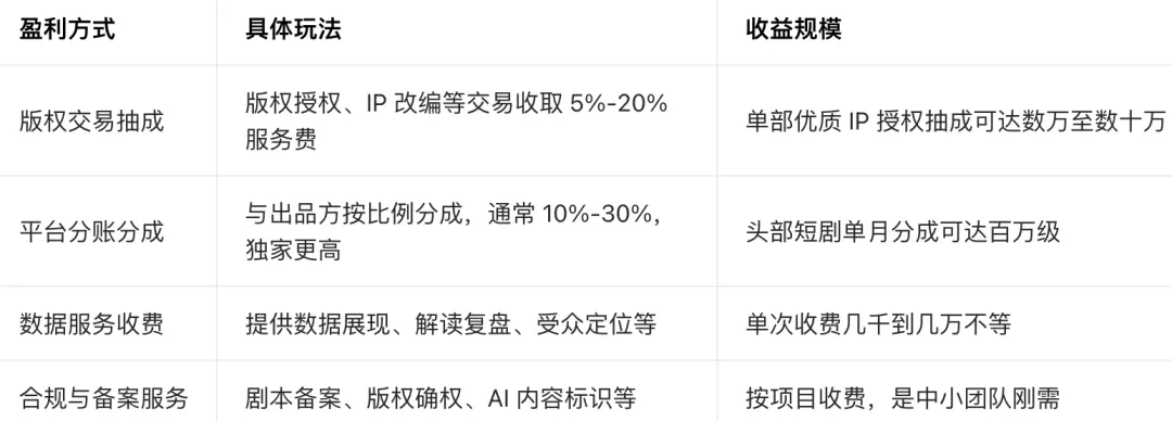 - 以版权入股、现金投资参与短剧开发,既给 IP 又给钱,同时锁定后续分成;