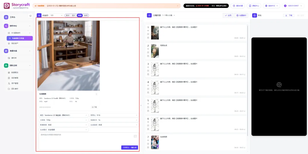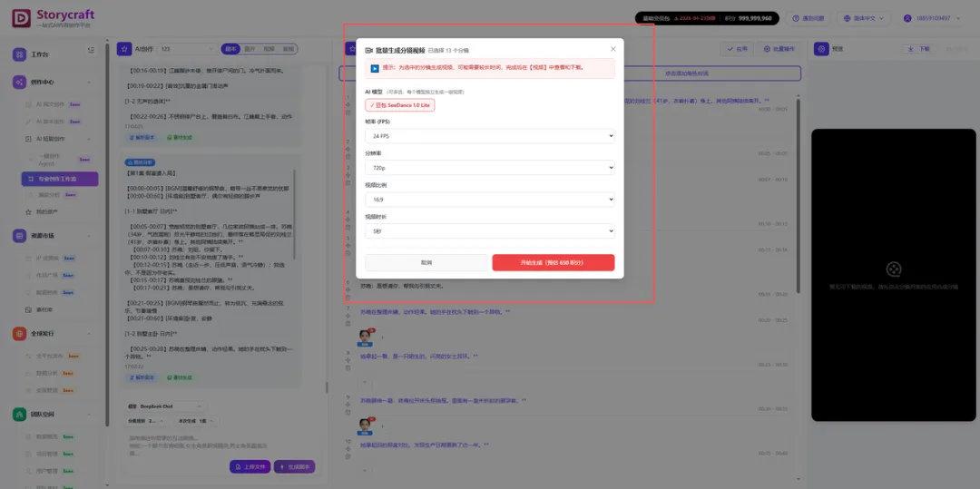 这里最值得关注的一点是:从剧本到分镜,全程无需手动拆镜头,AI自动完成分镜结构规划,大幅降低了此前需要专人负责的分镜拆解工作量。