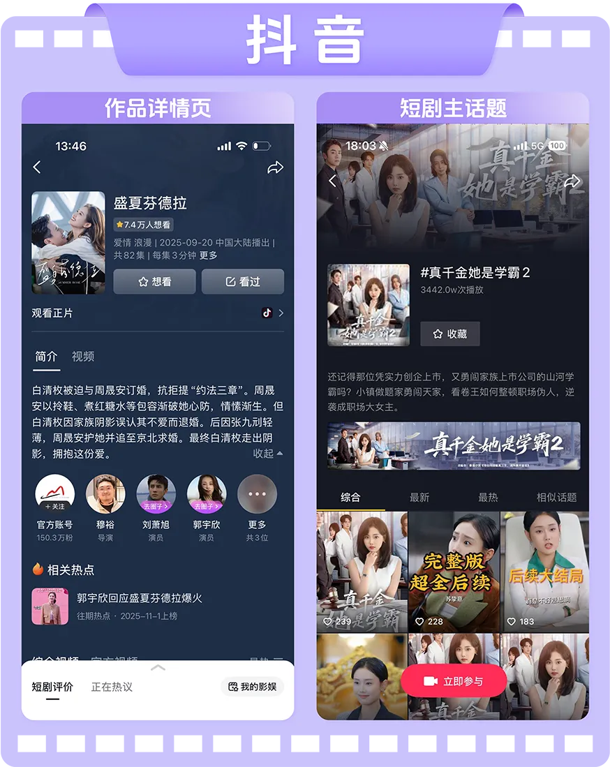 抖音集团短剧版权中心希望为广大短剧创作机构提供更好的支持,为创作者带来更多收获,同时为短剧行业的长期健康发展,贡献一份力量。