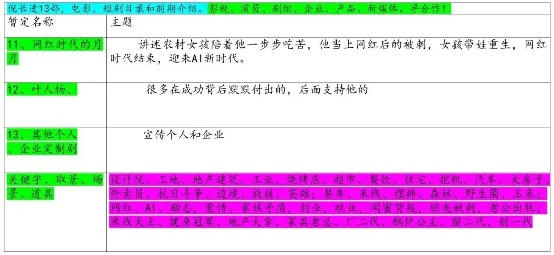 倪长进13部,电影、短剧目录和前期介绍。影视、演员、剧组、企业、产品、新媒体。寻合作!