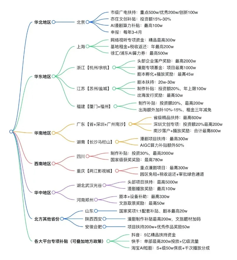 • 制作补贴:实际投资30%,最高2000万