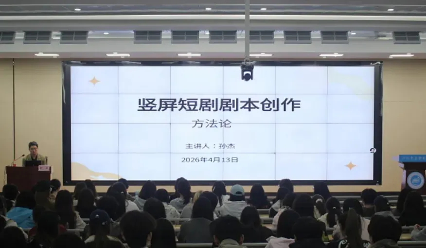 4 月 13 日下午,学校在 5 号报告厅举办短剧剧本创作方法论专题讲座。知名导演、编剧孙杰应邀主讲,师生代表参加学习。本次讲座专为助力师生参与 “农发杯”“执笔筑梦,剧映芳华” 短剧剧本创作大赛举办。