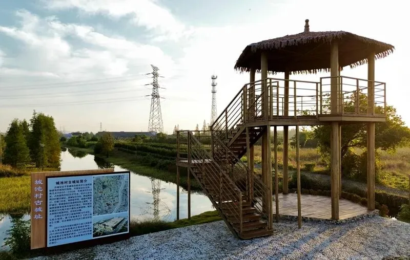 城池村古城址位于古庐江郡道南宅周氏花亭湖岸边,登上观景台遥想2000年前大城的旧貌依稀可见。