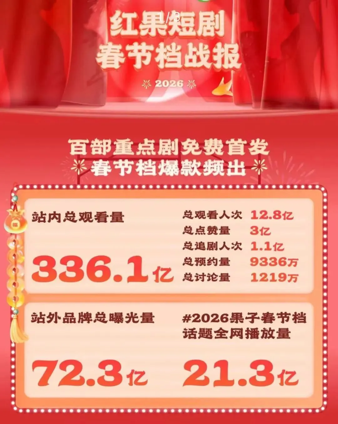 过去一年,红果短剧在2025年重点档期实现热度与口碑双爆发,暑期档站内总观看量突破311亿次,今年春节档总观看量更是达到336.1亿,《昼以继夜》《十八岁太奶奶4》等多部作品实现“播放量破10亿、热度值破1亿”的双破亿战绩。群像剧、系列IP剧持续涌现,多元描绘出人间烟火与人性温度。