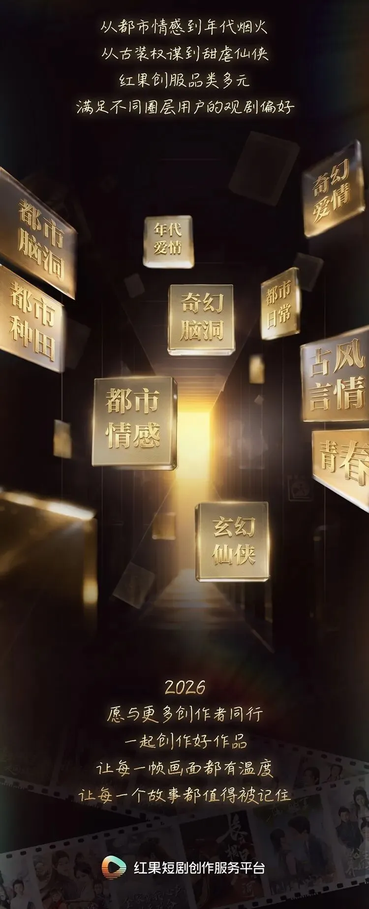 2025年8月以来,红果加速调整平台发展战略,升级剧本合作政策、发布演员合作计划,推出“短剧编剧第一课”系列策划,帮助新人编剧快速熟悉行业。11月,红果举办首届红果创作者大会,大会以“结果会发光”为主题,让幕后从业者走到台前,让创作价值被看见、被尊重,持续点燃着行业的创作热情。