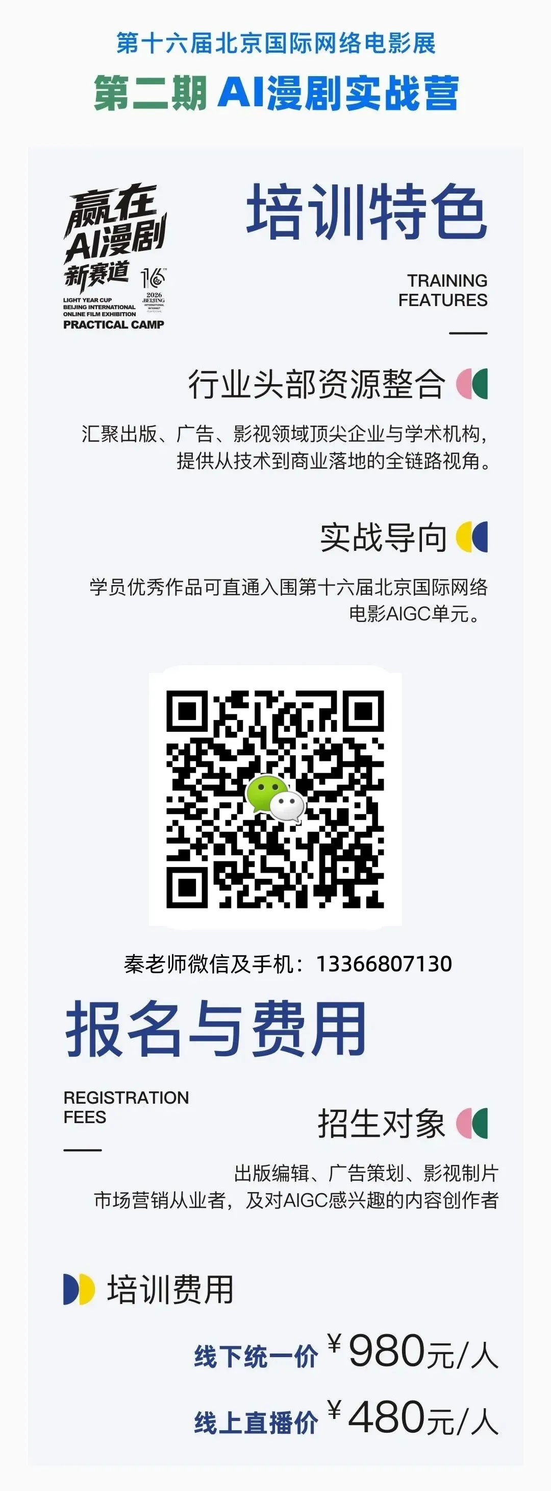 面授课费:980元/位(赠送线上直播及回放权限,费用累积计入全年课费及影视学堂会费)