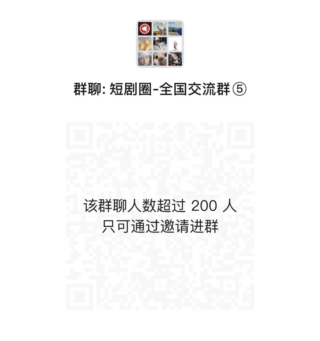 短剧圈全国交流群二维码失效,想进群交流的小伙伴滴滴我,仅限短剧行业的小伙伴入群。请告知管理员您具体是从事短剧行业哪一块工作,方便拉你进入相关专业的群。