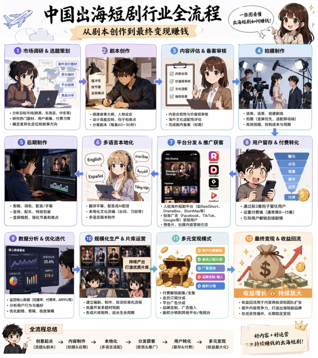 这篇主要是介绍下短剧行业的链路,每条链路的侧重点和相关工作,给对于短剧感兴趣的小伙伴提供下入门扫盲。